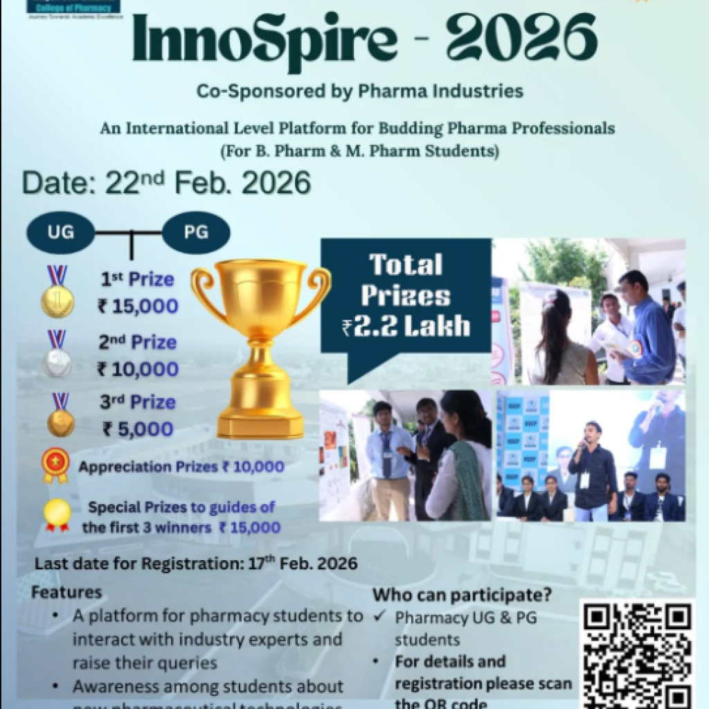 Accredited with A+ Grade (CGPA 3.3) by NAAC, Bangalore | Gold Category in AICTE-CII Survey| Approved by PCI and AICTE, New Delhi | ISO 9001:2015 Certified