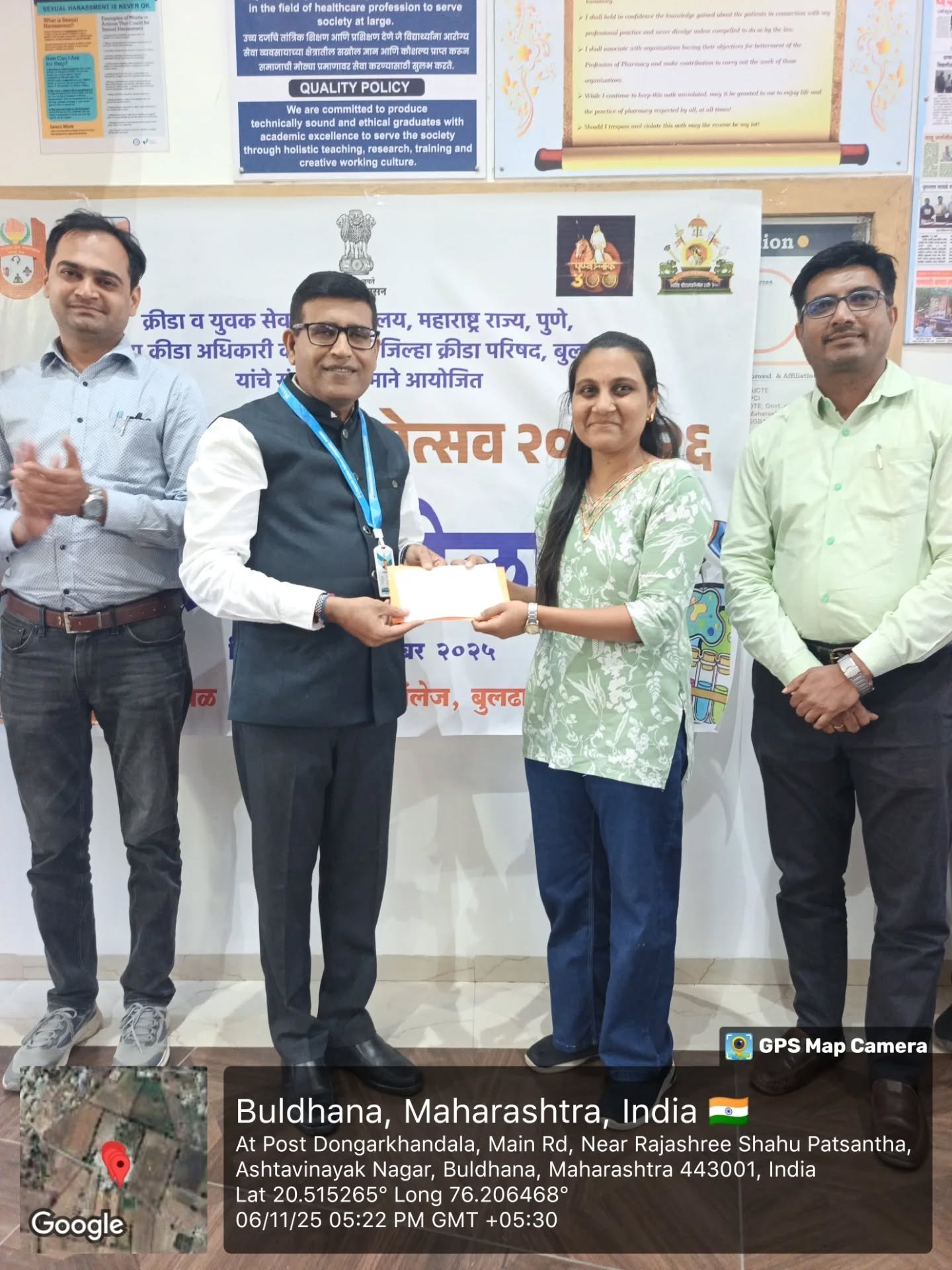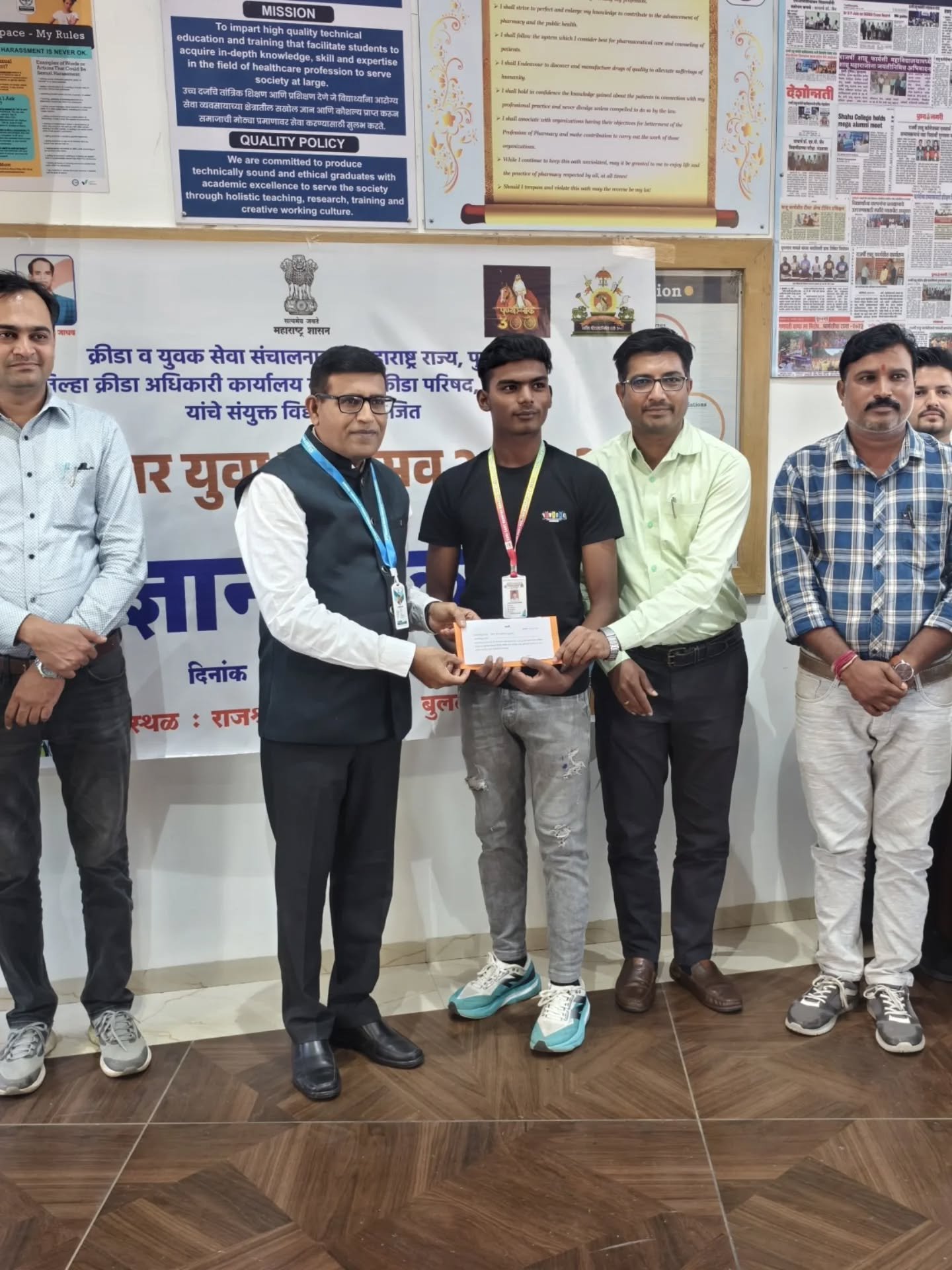 The District Youth Festival was organized by the District Sports Office, Buldhana, on 6th November 2025. As part of the festival, a District Level Science Exhibition was successfully conducted in collaboration with Rajarshi Shahu College of Pharmacy, Buldhana (RSCP).