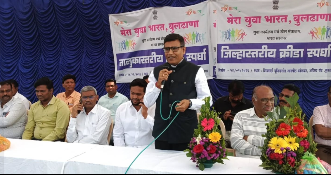 MY Bharat organized a District-Level Sports Competition at Shivsai Universal Dnyanpith, Buldhana. The inaugural function was graced by our respected Principal, Dr. Shirish Jain, as the Chief Guest and Guest Speaker, along with Shri Mrutunjay Gaikwad (Member, Municipal Corporation, Buldhana), Shri Pranit Sangvikar (DYO, MY Bharat), and the honorable management of Shivsai Universal Dnyanpith, Buldhana.