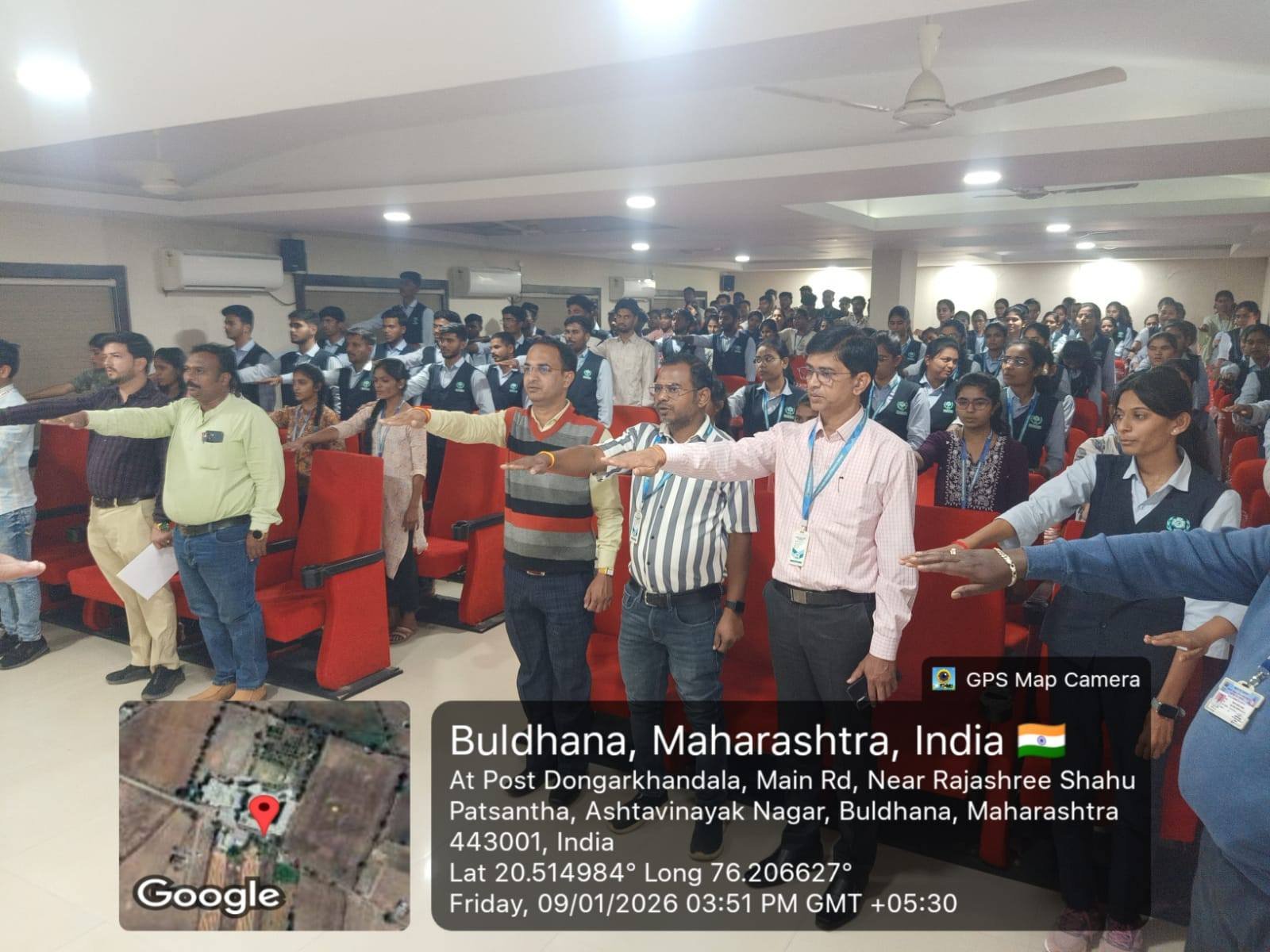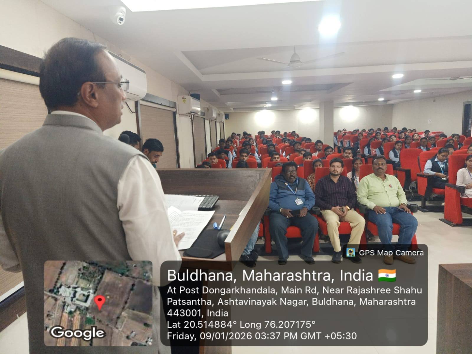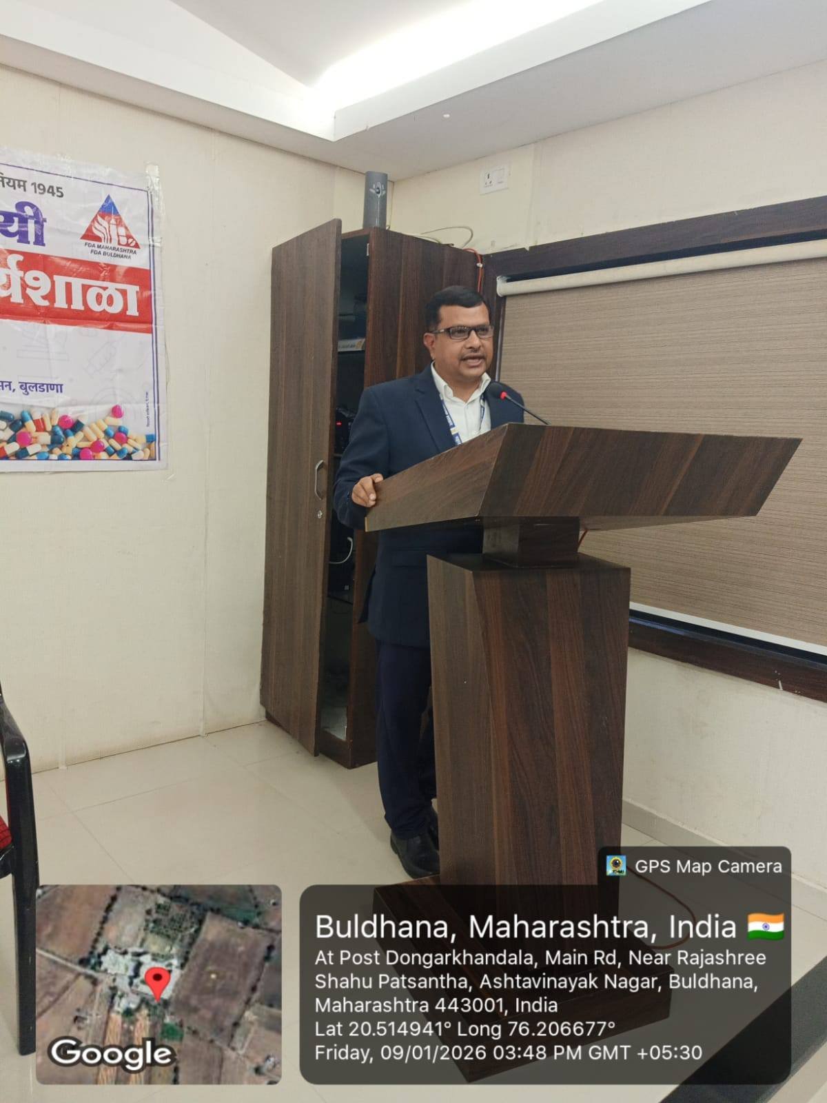Subsequently, Mr. Gajanan Ghirke, Assistant Commissioner (Drugs), Food and Drug Administration, Maharashtra State, Buldhana, delivered an informative session on narcotic drugs. He elaborated on their adverse physical, mental, and social effects, guided students on ways to stay away from drug abuse, and encouraged them to actively participate in spreading awareness in society.