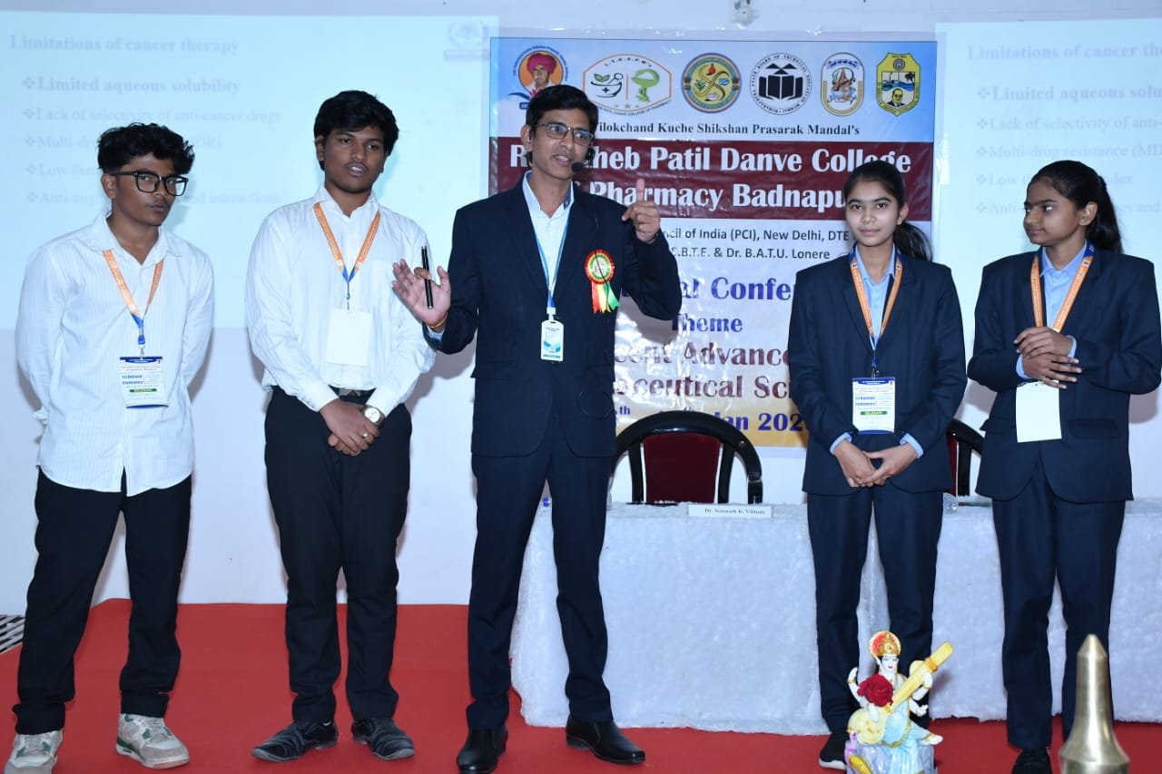 Dr. Somnath Swami Vibhute, faculty member of Rajarshi Shahu College of Pharmacy, was invited as a resource person at the Two Days National Conference organized by Raosaheb Patil Danve College of Pharmacy, Badnapur, Jalna. He represented the institution and delivered an expert talk on “Mesoporous Silica Nanoparticles (MSNs): A Promising Platform for Cancer Management,” highlighting recent advances and translational prospects in oncology and advanced drug delivery.