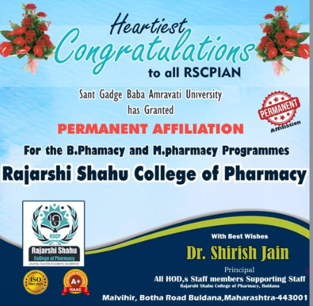 Heartiest congratulations to all RSCPian for granting permanent Affiliation to Sant Gadge Baba Amaravati University, Amaravati